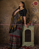 Indulge in the allure of our Semi Ikkat black patola saree, featuring the enchanting design that weaves a tale of traditional craftsmanship. Immerse yourself in the sophistication of black color, perfectly enrich with traditional patola design. Elevate your style with this exquisite patola saree, a harmonious blend of heritage and contemporary grace.
