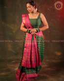 Pink Green Fancy Patola Saree for Sale, Online Single Ikkat Silk Saree Shop