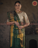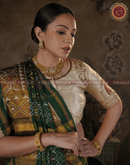 Indulge in the allure of our Single Ikkat , featuring the enchanting Design Navratna that weaves a tale of traditional craftsmanship. Immerse yourself in the sophistication of Color Green, perfectly complemented by the resplendent Pallu. Elevate your style with this exquisite saree, a harmonious blend of heritage and contemporary grace.