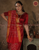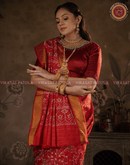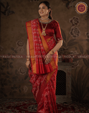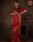 Indulge in the allure of our Single Ikkat , featuring the enchanting Design Navratna that weaves a tale of traditional craftsmanship. Immerse yourself in the sophistication of Color Red, perfectly complemented by the resplendent Pallu Jute in contrasting Pallu Color Black. Elevate your style with this exquisite saree, a harmonious blend of heritage and contemporary grace.