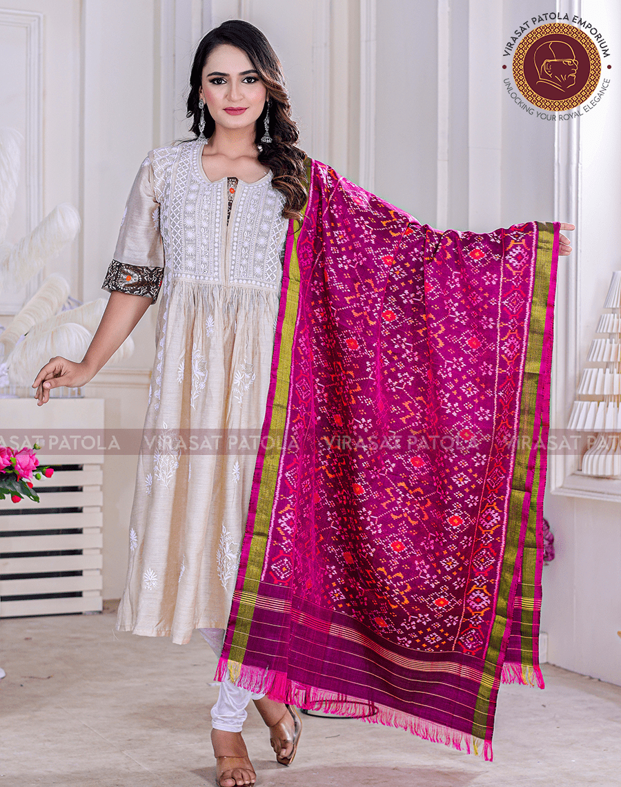 Buy Wine Manekchowk Patola Dupatta | Designer Silk Dupatta for Sale