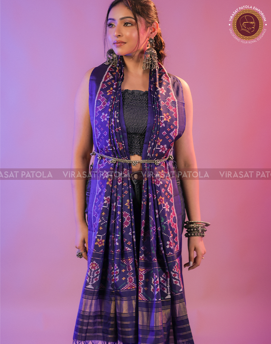 • Virasat Patola boasts of an exquisite collection of silk, cotton silk, georgette, chiffon, crepe, linen, and jute saris in prints, embroidery, zari, kanta work, dual-tone and so on. From everyday wear to festive wear, Nalli has everything you need to build a wardrobe that suits your taste and lifestyle.