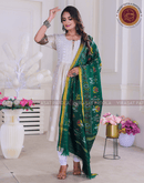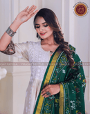 Elevate your attire with our exquisite Single Ikkat Patola Dupatta, featuring the timeless Narikunjar design in vibrant Green hues, accented with a captivating attractive border.