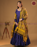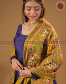 Elevate your attire with our exquisite Semi Ikkat Patola Dupatta, featuring the timeless Nari Kunjar design in vibrant Olive hues, accented with a captivating attractive border.