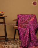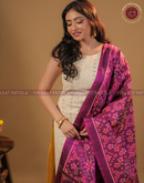 Elevate your attire with our exquisite Semi Ikkat Patola Dupatta, featuring the timeless Navratna design in vibrant Wine hues, accented with a captivating attractive border.