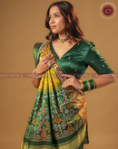 Buy Olive Green Traditional Patola Saree, Shop Designer Ikkat Silk Saree