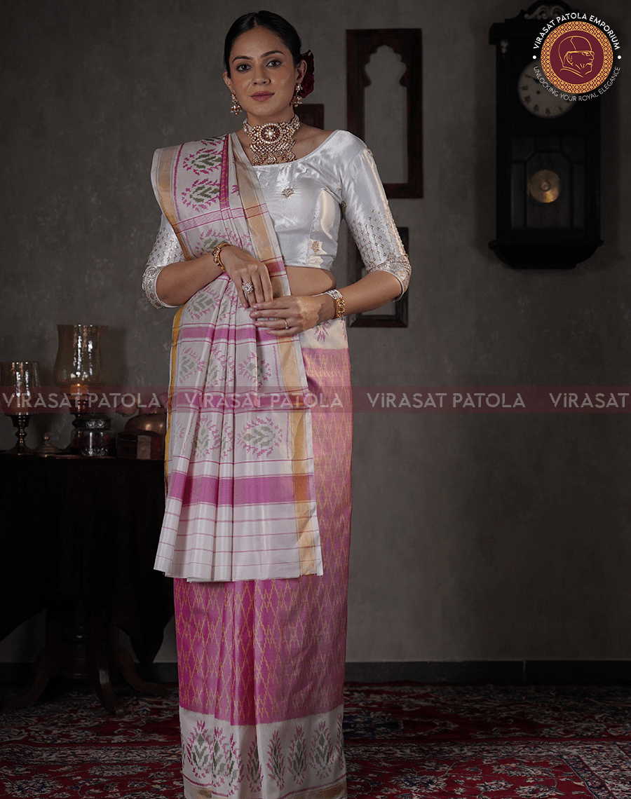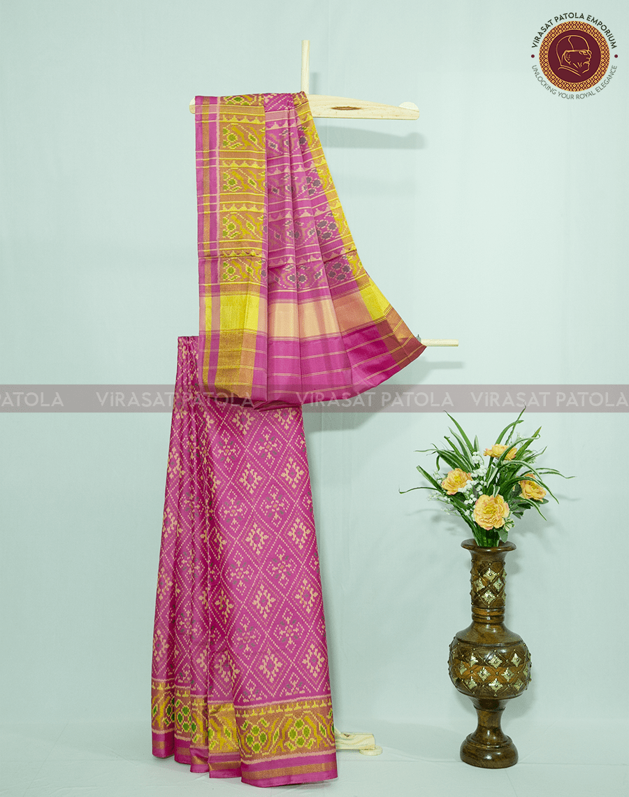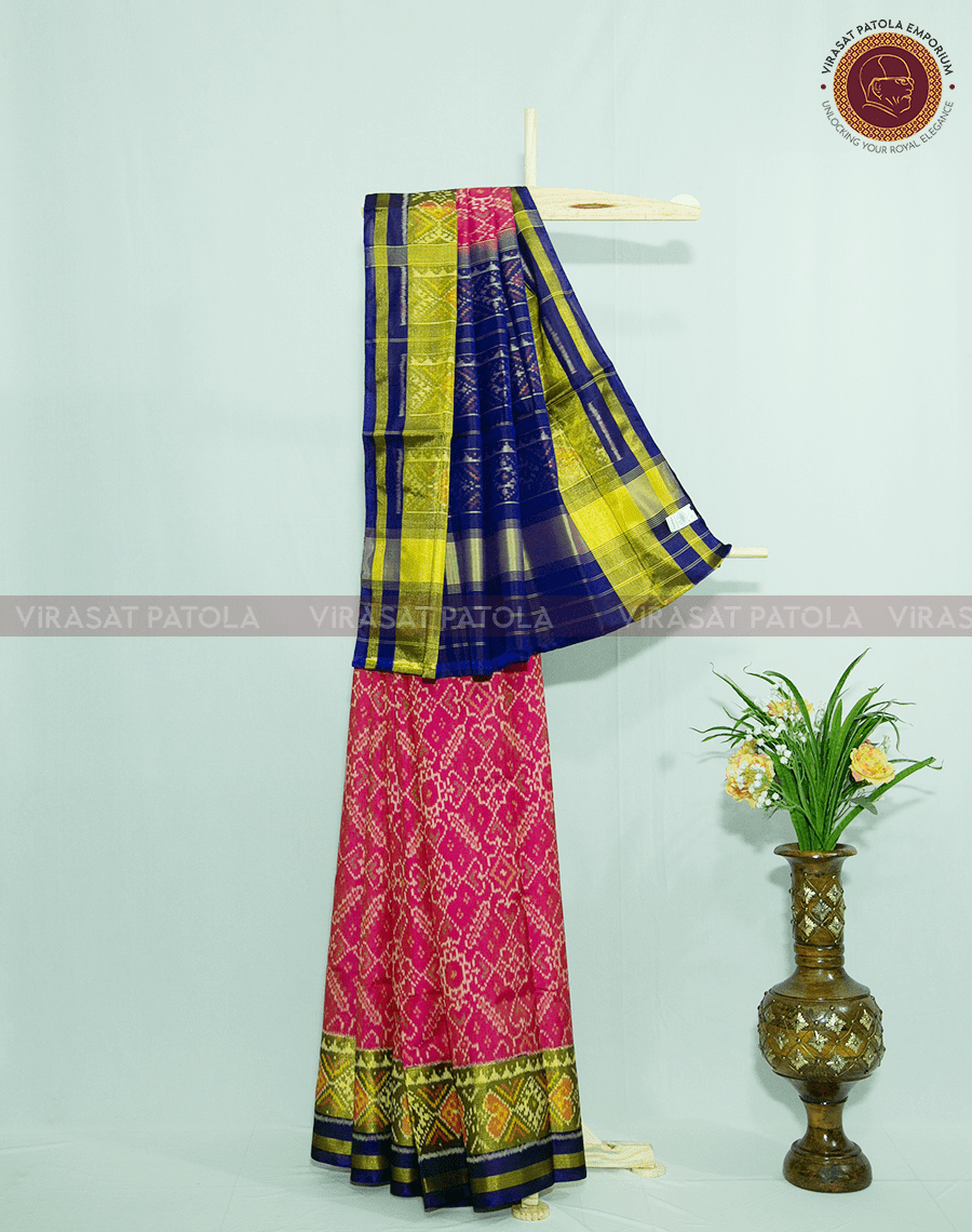 Indulge in the allure of our Semi Ikkat black patola saree, featuring the enchanting design that weaves a tale of traditional craftsmanship. Immerse yourself in the sophistication of black color, perfectly enrich with traditional patola design. Elevate your style with this exquisite patola saree, a harmonious blend of heritage and contemporary grace.